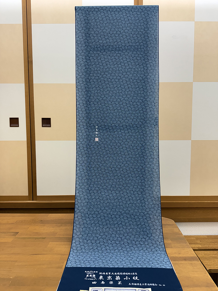 米澤 五倍子染 手絞り名古屋帯 麻の葉文様