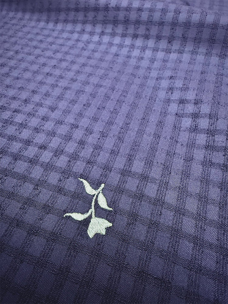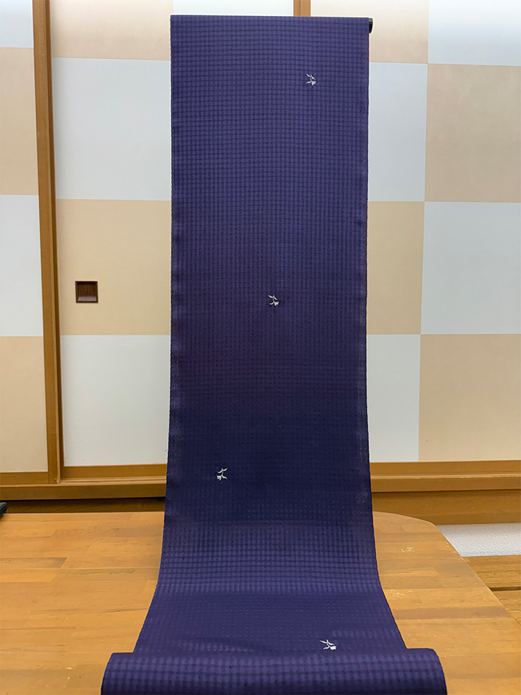 手描きしおぜ名古屋帯 線松文様(濃緑紺地)