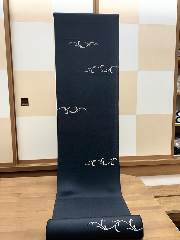 西峰 蛍光に花 黒地 国産本麻なごや帯